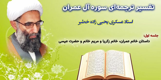 جلسه اول قرائت وتفسیر ترجمه ای آل عمران با موضوع: داستان خانم عمران، خانم زکریا و مریم خانم و حضرت عیسی فایل کم حجم جلسه اول تفسیر ترجمه ای سوره آل عمران فایل صوتی جلسه اول قرائت و تفسیر ترجمه ای آل عمران